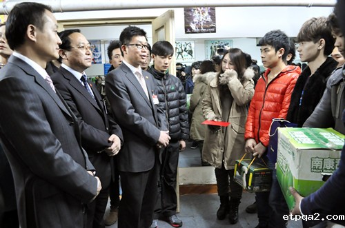 在北京晨怡多民族艺术团租住地----居民小区简陋的地下室,蓝会长一行听取了艺术团的情况介绍后,同部分演员亲切交谈,蓝会长详细询问、了解了艺术团演员的生活和节目排练、演出情况等有关情况,并代表必威betway中文网页向艺术团赠送了慰问金及慰问物品。