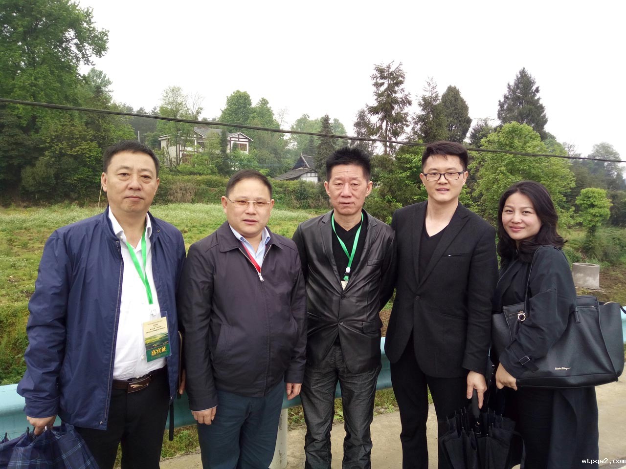 【大会期间,付昭成(中)与县有关部门负责人考察现场时合影】