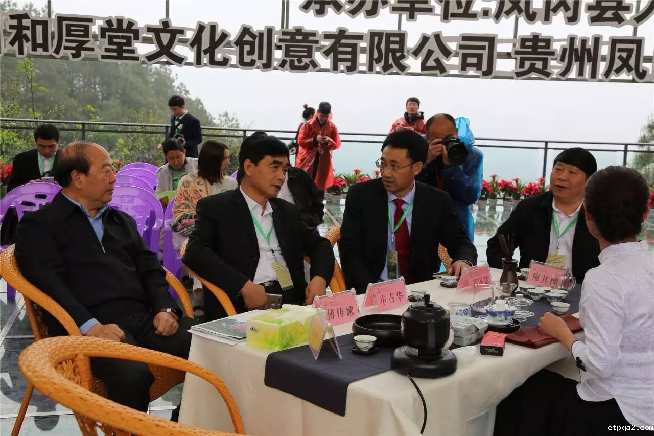 茶界英豪,齐聚凤冈。4月27日,2017年“东有龙井·西有凤冈”浙黔茶业大会在中国茶海之心——贵州凤冈田坝景区隆重举行。来自北京、山东、浙江、四川和贵州等地的专家、学者、茶行业组织代表近300人应邀出席,共商凤冈锌硒茶叶发展大计。大会紧紧围绕“东有龙井•西有凤冈”的主题,从茶文化交流、品牌打造与宣传、茶产品开发、茶产业发展前景和产业链延伸等方面进行了广泛探讨。我会驻会顾问申占华、副会长付昭成、副秘书长朱尤宝、郭兰兰和政策研究室主任蓝素端一行应邀出席活动。