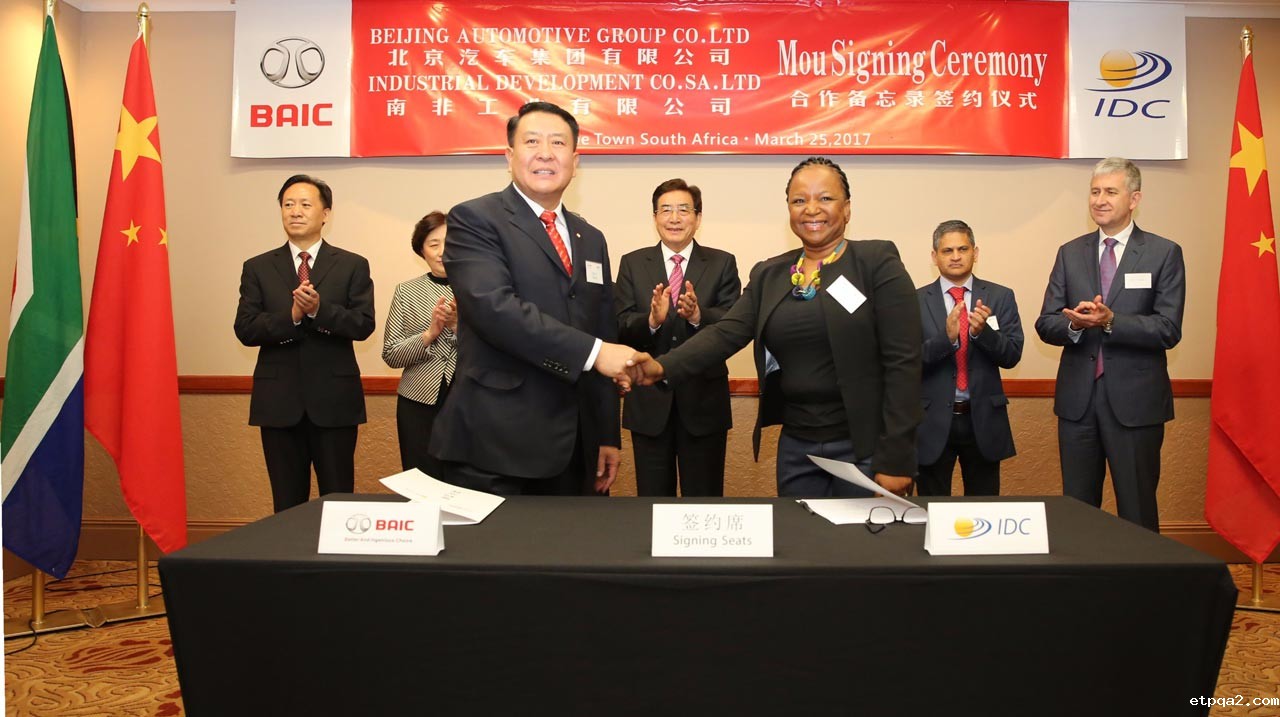 2017年3月25日,北汽集团与南非工业发展有限公司签署南非汽车工业园项目合作备忘录