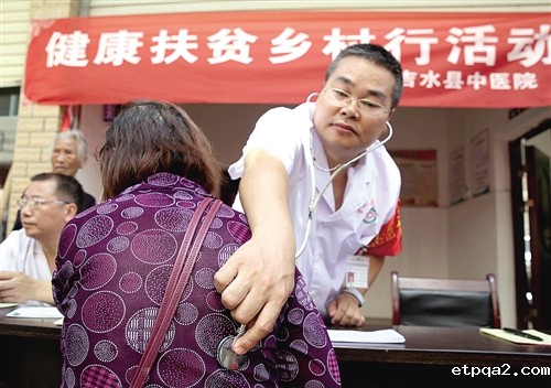 七月五日,江西吉水县中医院组织医疗专家,冒着酷暑,来到该县最偏远的山区,为当地百姓免费送医送药,开展健康扶贫。