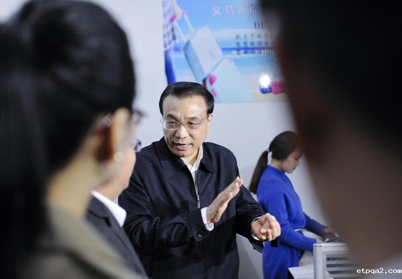 2014年11月19日,李克强总理到访义乌一家网店。这家网店老板大学毕业后来到素有“网店第一村”的青岩刘村创业,几年间月销售额已过百万,还带动了不少员工创业。听到这里,总理高兴地鼓励正忙着接单的“店小二”既当就业者,又当创业者,未来成为“大掌柜”。