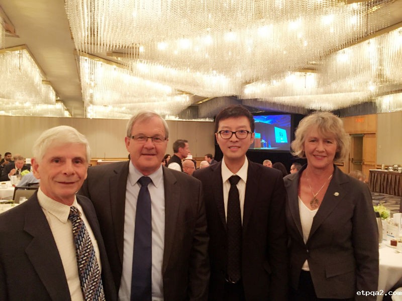 左起人 北美分会执行会长:祈柏恆 ;加拿大农业与农业食品部部长麦考利;北美分会会长:王培霖;加拿大国会议员:梅丽乔