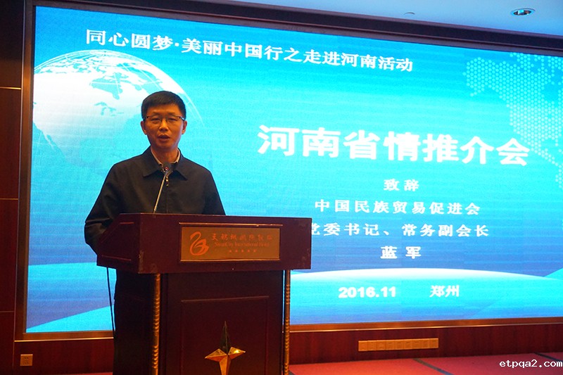 蓝军在致辞中说,河南省是一个历史悠久的省份,也是中华文明的发祥地之一,有着深厚的文化底蕴。现今的河南省作为我国的产粮大省,经济发展成果令人瞩目,已经吸引了很多企业在河南省开展合作和投资,因此企业在河南开展合作和投资是有深厚基础的。本次活动即使为了让更多企业走进河南进行投资,为河南省经济发展注入新活力、新动力搭建平台,又是为了响应中办、国办号召更好地履行我会作为全国性社会组织的职能。举办此次活动,希望地方能够和企业进行多方位资源对接。蓝军指出,河南省是个多方面优势明显的大省,对于各方来说都是一个很好的发挥优势的平台。他表示今后必威betway中文网页与河南省政府会有更长远的合作,坚信通过民贸会、河南省政府和众多企业的支持,一定能推动河南省经济发展迈上新台阶。最后,蓝军代表必威betway中文网页和参加活动的企业对河南省政府举办此次活动给予的支持表示感谢。
