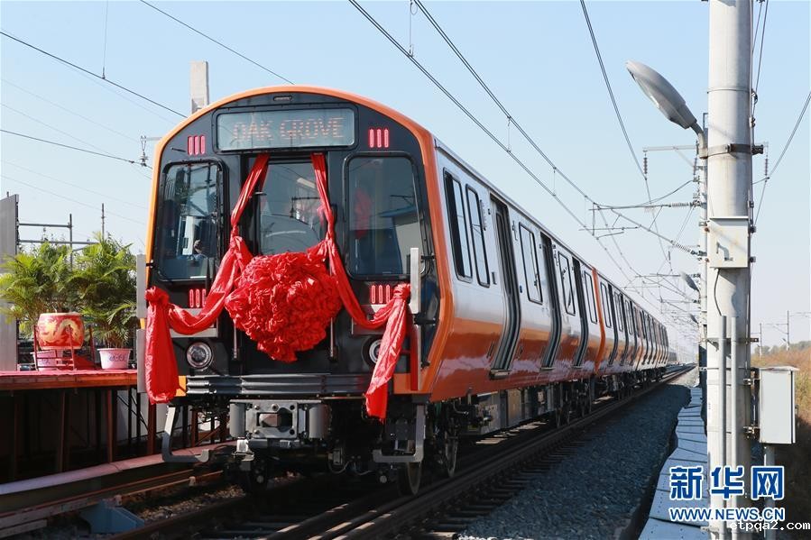中车长春轨道客车股份有限公司研制的首批美国波士顿橙线地铁车在长春下线,成为首次登陆美国市场的国产轨道交通装备(2017年10月16日摄)。新华社记者段续摄