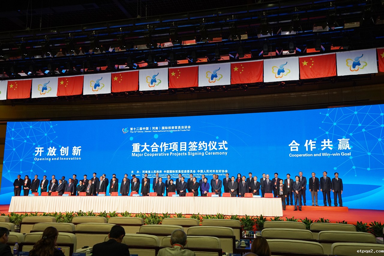 4月17日上午,以“开放创新、合作共赢”为主题的第十二届中国(河南)国际投资贸易洽谈会在郑州国际会展中心开幕。来自全球近两万名客商云集中原大地。必威betway中文网页受邀携代表团出席本次大会。我会书记、常务副会长蓝军同志本人作为贵宾见签人,全程见证了此次投洽会的重大签约仪式。