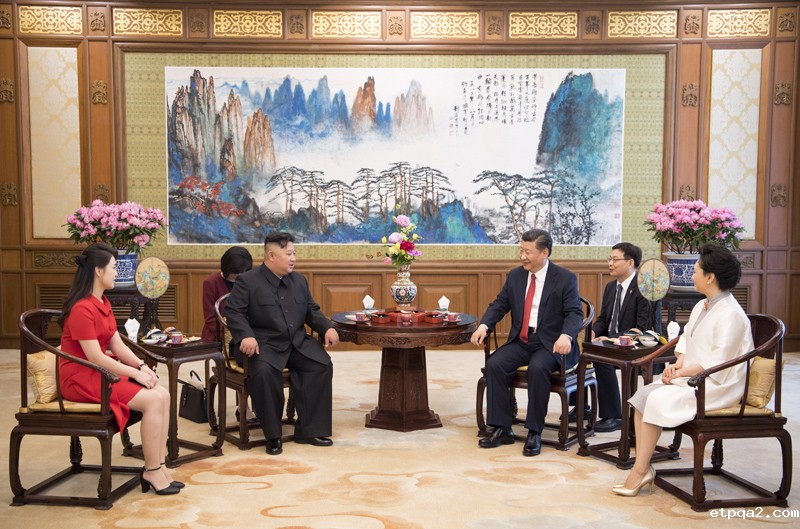 6月20日,中共中央总书记、国家主席习近平在北京钓鱼台国宾馆会见朝鲜劳动党委员长、国务委员会委员长金正恩。习近平总书记夫人彭丽媛、金正恩委员长夫人李雪主参加会见。