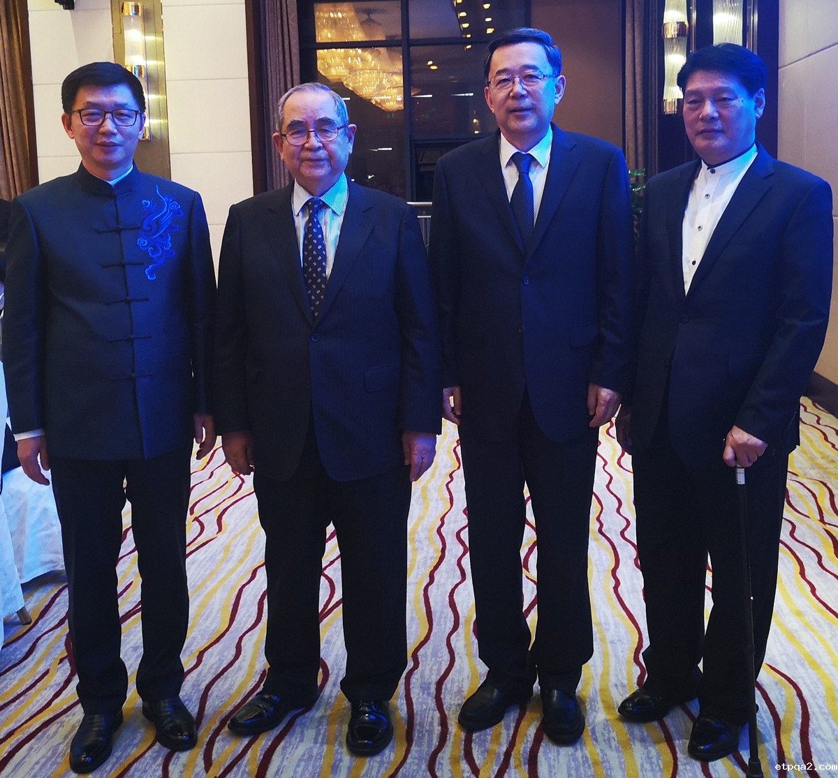 开幕前,蓝军(左1)与韩国前总理李寿成(左2),贵州省委书记、省人大常委会主任孙志刚(右2)亲切交流