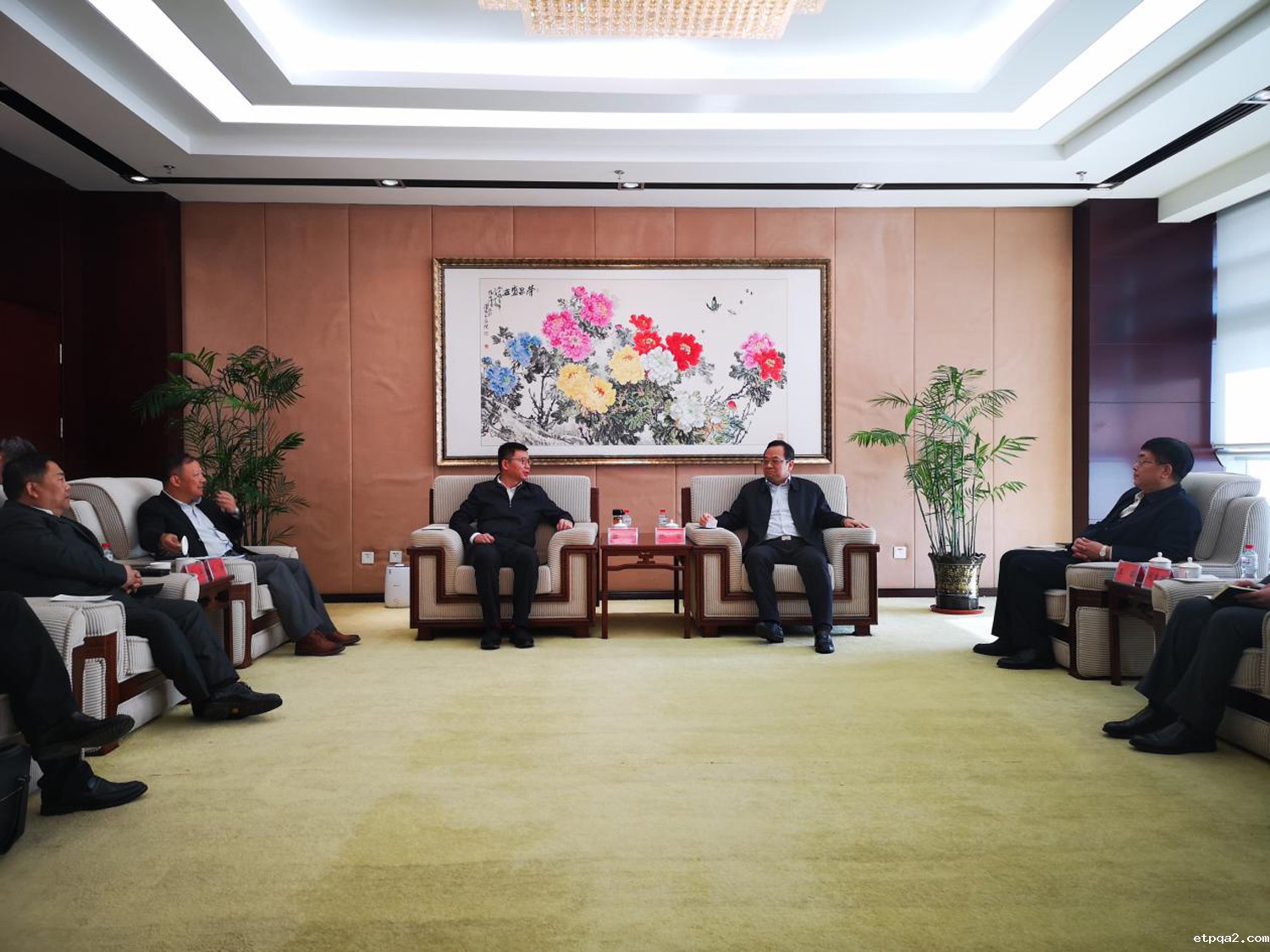 张雷(中右)会见蓝军(中左)一行,考察团企业负责人与沈阳市政府相关职能部门负责人进行座谈交流