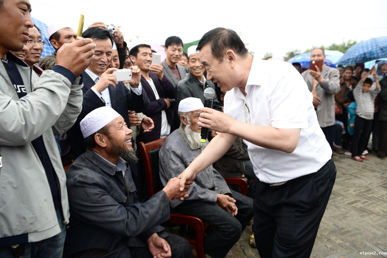 (图:“同心圆梦•美丽中国行”走进西吉在单家集与回族大爷亲切交流)