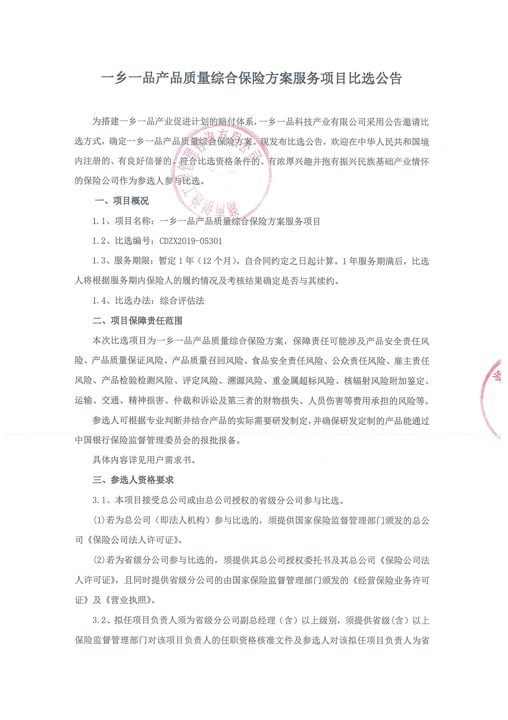 betway必威西汉产品产品质量综合保险方案服务项目比选公告