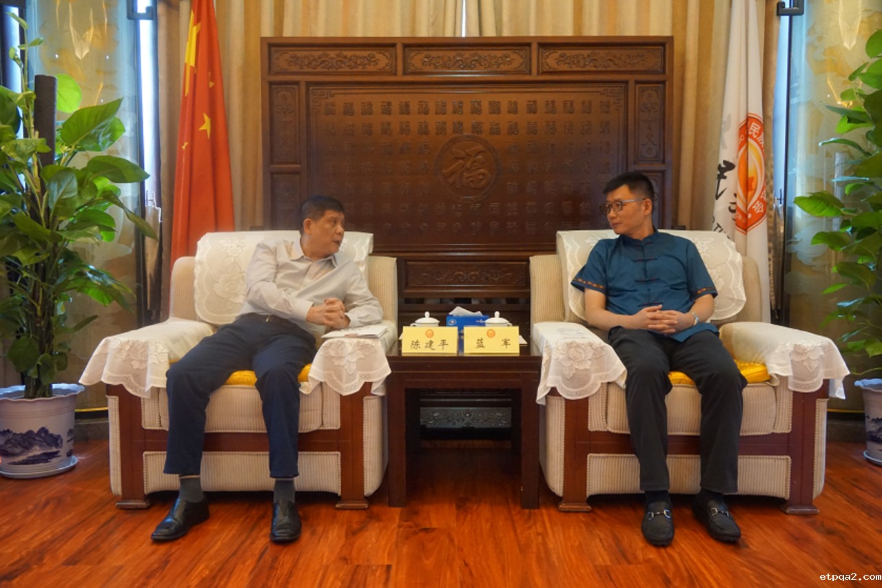 7月27日上午,我会会长蓝军会见了泰中工商业联合总会常务副会长陈建平及北欧国际交流协会会长季展有来一行,并进行交流座谈。