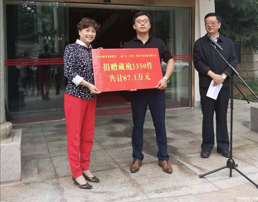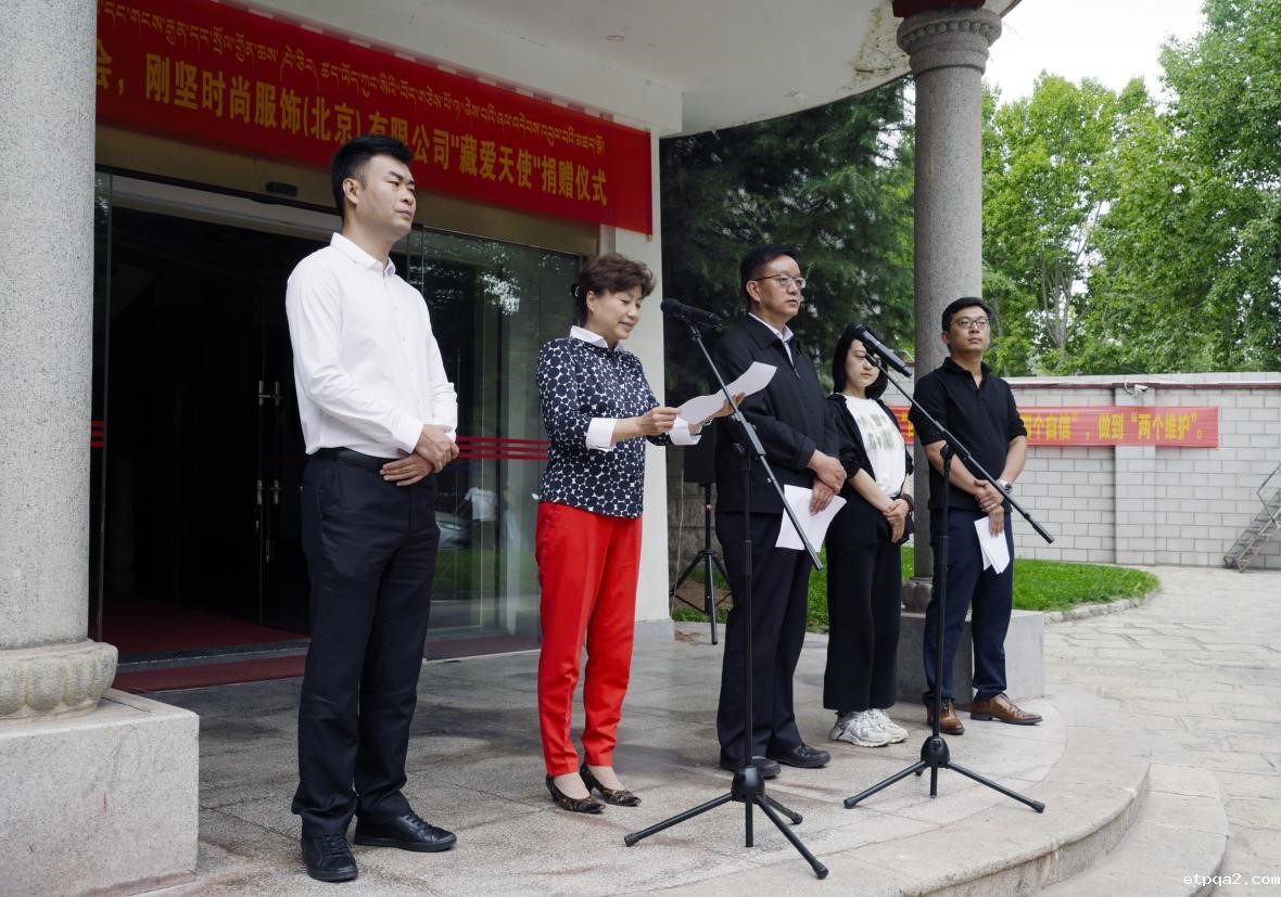 仪式上,叶银川代表援助西藏发展基金会对我会携手一品广万(长沙)科技产业发展有限公司、刚坚时尚服饰(北京)有限公司此行对藏区的关心与捐赠表示衷心的感谢。叶银川说,此次捐赠活动充分体现了民贸会和爱心企业情系西藏、情满高原的情怀,也体现了他们对西藏贫困县在校学生的无限爱心。捐赠防寒藏袍,能够有效改善贫困县部分在校学生的生活条件。孩子是祖国的未来,希望贫困地区的孩子在社会爱心善举的帮助下,心怀感恩,不懈努力,砥砺前行。