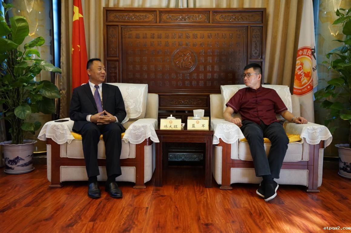 蓝军(右)与林大旺(左)在座谈中亲切交流