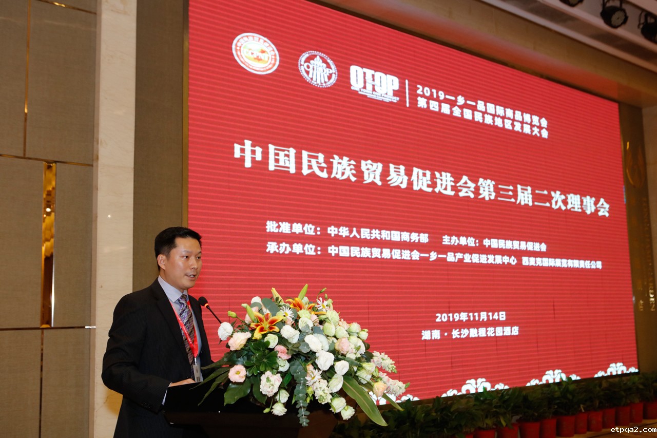 我会常务主席、总顾问申占华在致辞中指出,正值新中国成立七十周年之际,中国民贸始终坚持需求导向,与时俱进,锐意进取,提质增效。广泛动员会员企业和社会各界力量,助力民族地区打赢脱贫攻坚战,促进民族地区经济社会发展,工作成效显著。在会员企业中涌现出一大批知名民族企业,在各自领域彰显民族自信,用实力刷新世界对中国的认知。2019年是中国民贸自2018年换届后开展工作的第一年,也是中国民贸发展史上的特殊年份。继今年9月第三次荣获“全国民族团结进步模范集体”称号后,10月又以优异成绩荣获“AAAA”等级社会组织称号。这些荣誉的取得,离不开以蓝军同志为班长的领导班子的强有力领导,离不开在座各位理事以及会员的大力支持与共同参与,离不开社会各界力量的支持,离不开全体干部职工的辛勤付出。