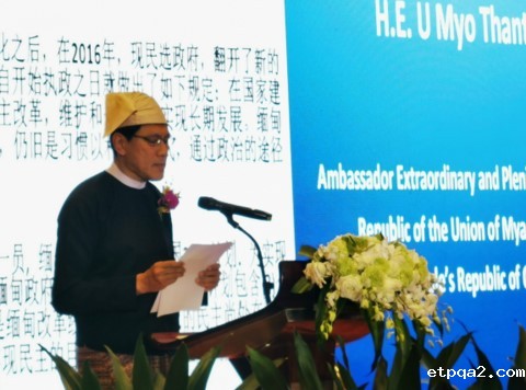 缅甸驻华大使苗丹佩代表缅甸联邦共和国政府和缅甸人民向中方在缅甸实现和平民主进程中给予的坚定支持和帮助表达诚挚感谢。他说,“胞波”就是同胞兄弟,缅中两国是好邻居、真朋友,“胞波”情谊坚实持久。缅甸作为第一个承认新中国的非社会主义国家与第一个同中国签订边界协议的国家,坚定奉行和平共处五项原则,积极参与“一带一路”建设与中缅经济走廊建设。中国国家主席习近平即将对缅甸进行的国事访问,必将成为缅中关系发展历程中的里程碑,进一步加深缅中两国间的相互信任与两国人民间的全方位合作。我们愿与中国政府以及各位朋友一起,尽己所能地为两国关系取得更大发展而努力奋斗。