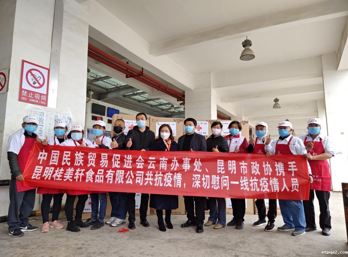 2月16日下午,云南省第五批援助湖北医疗队108名成员乘专机奔赴湖北咸宁开展新冠肺炎救治工作,截至目前,云南省共向湖北派出援助医疗队员809名。为支持高强度工作的医护工作者以良好的状态坚守防控第一线,我会云南办事处、昆明市政协携手昆明桂美轩(中华老字号)食品有限公司向战斗在一线的白衣天使送去关怀与支援,捐赠800箱云南特色鲜花饼,共计40000枚价值16万元,产品同机抵达湖北。希望战斗在一线的英雄们在紧张忙碌的工作之余也能感受到家乡人民的牵挂和温暖,平安凯旋!我会云南办主任陈静、云南省红十字会梁先平副会长、李慰部长及民建昆明市委相关领导出席捐赠仪式。