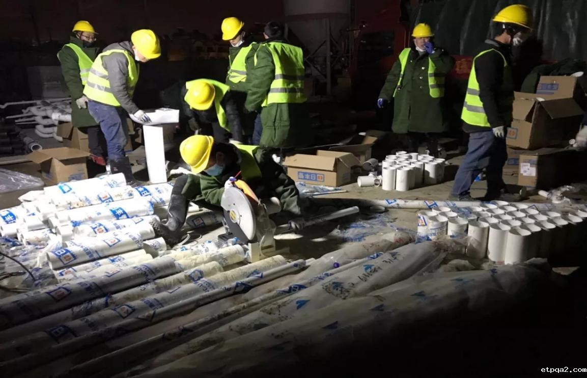 2月13日,在北京小汤山医院启动修缮改造工程中,日丰集团第一时间联系北京小汤山医院的工程方北京建工集团,经洽谈明确援建管道物资明细。组织集团天津基地、北京分公司员工加班加点,落实产品需求及装配。并紧急联系相关部门,获得在北京小汤山医院应急车辆通行证明。冒着冰雪,全速开往战区,仅用了6个小时,在2月14日凌晨1点09分便将所有物资紧急送达小汤山医院项目所在地。