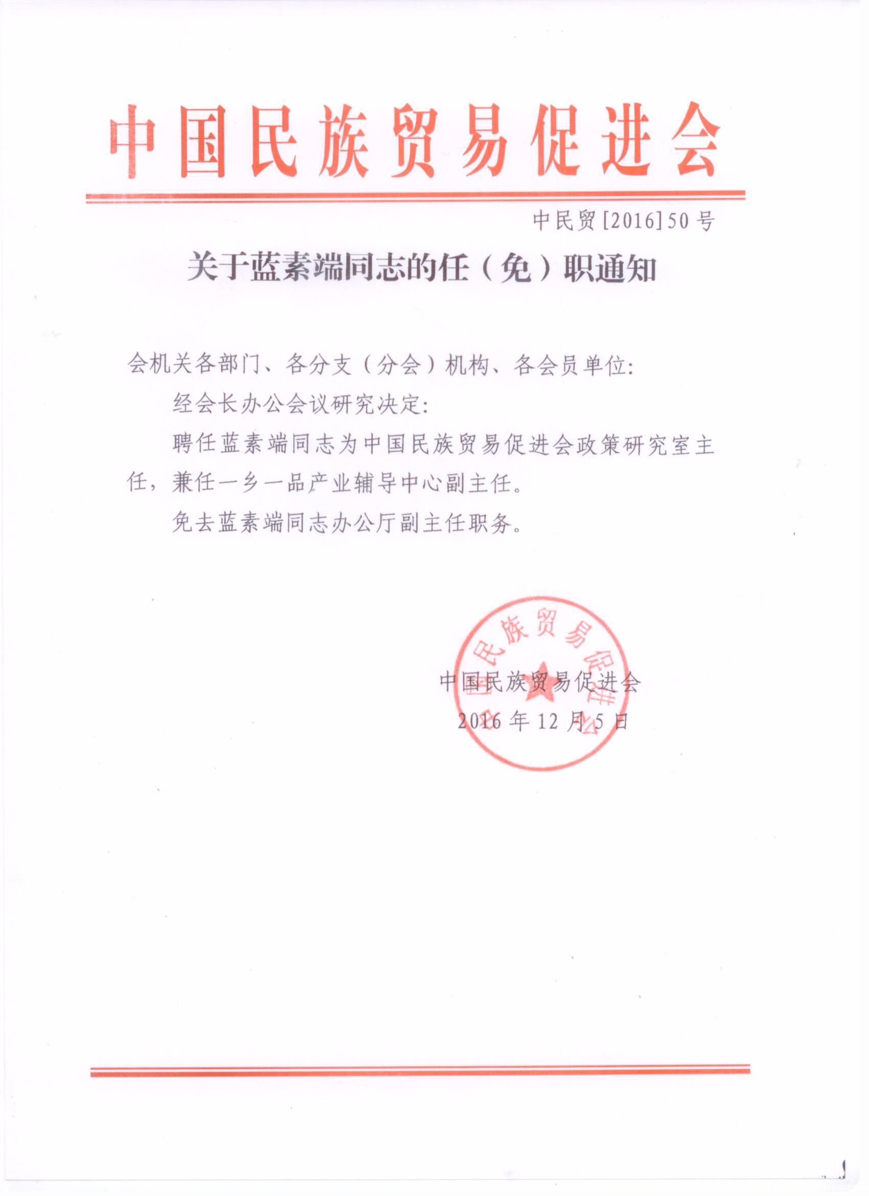 会机关各部门、各分支(分会)机构、各会员单位: 经会长办公会议研究决定: 聘任蓝素端同志为必威betway中文网页政策研究室主任,兼任betway必威西汉产业辅导中心副主任。 免去蓝素端同志办公厅副主任职务。