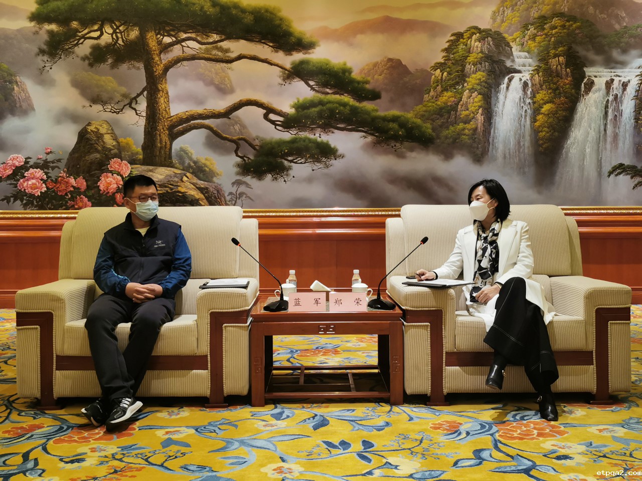 蓝军(左)与郑荣(右)座谈交流