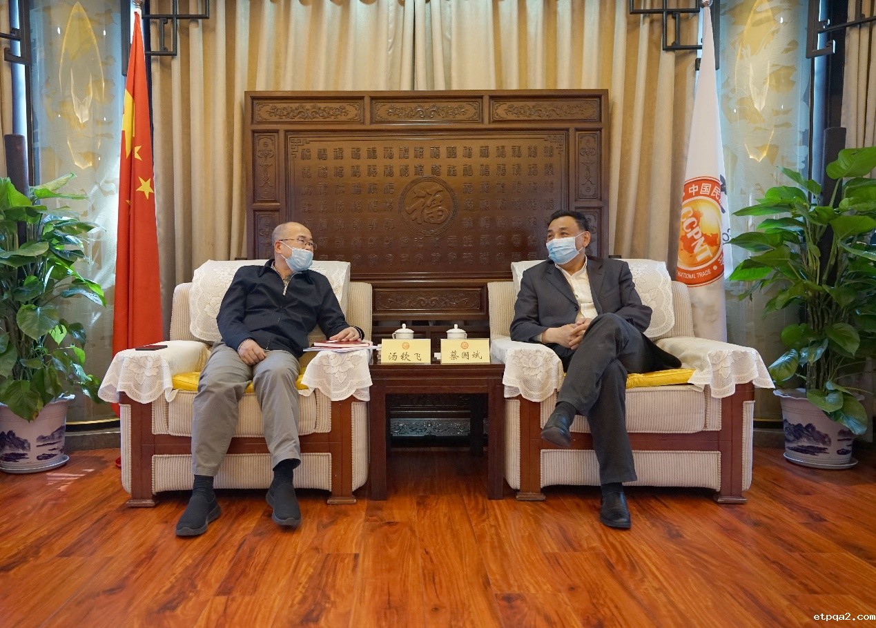 汤钦飞(左)与蔡国斌(右)进行座谈