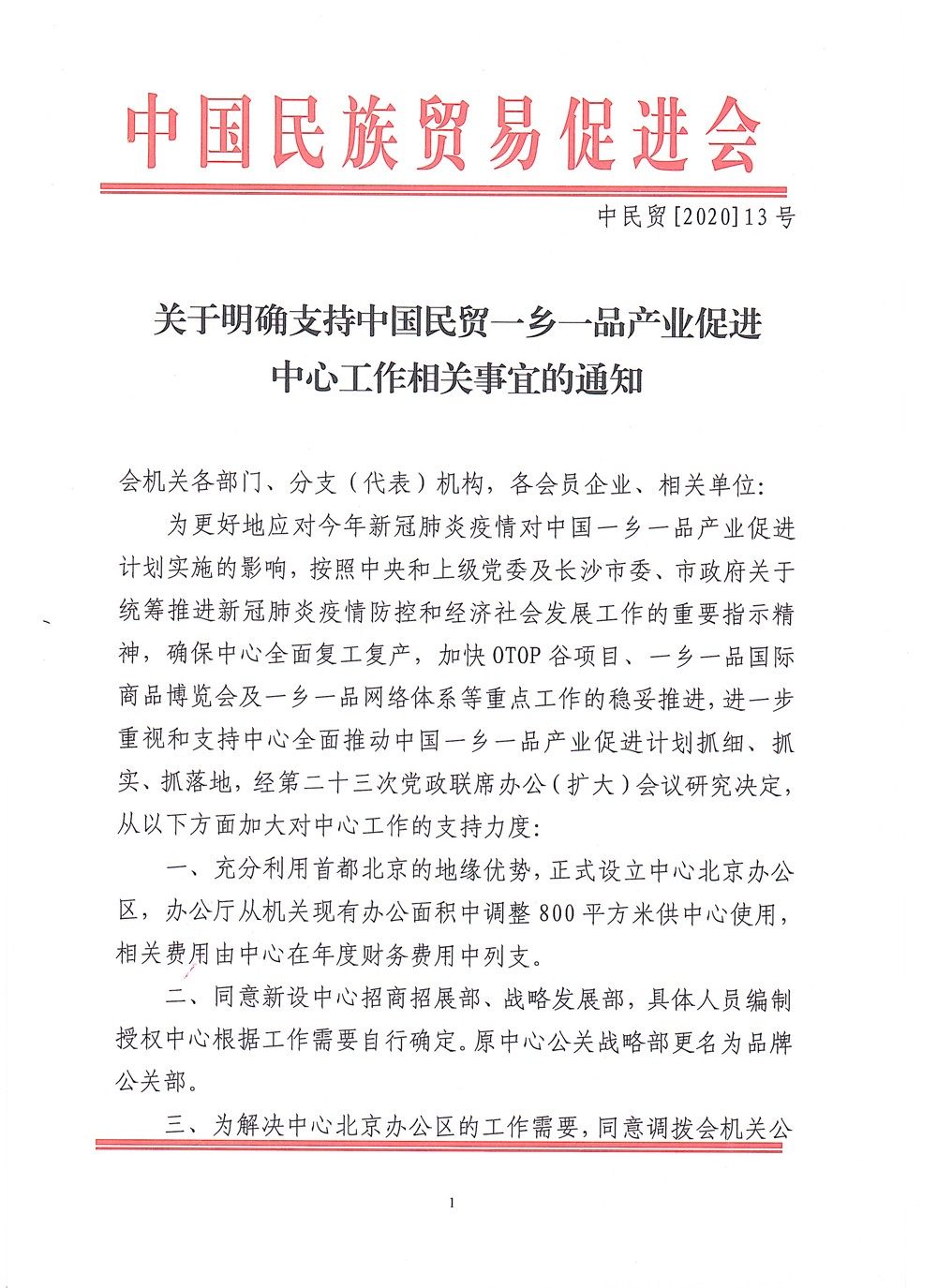 关于明确支持中国民贸betway必威西汉产业促进 中心工作相关事宜的通知