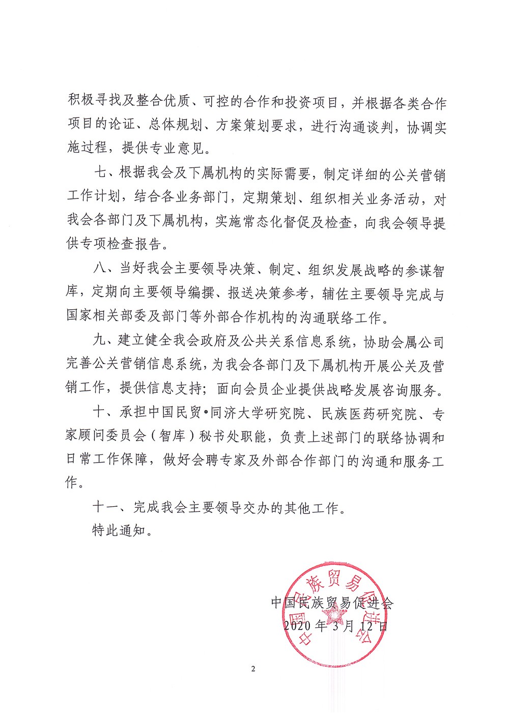 十、承担中国民贸•同济大学研究院、民族医药研究院、专家顾问委员会(智库)秘书处职能,负责上述部门的联络协调和日常工作保障,做好会聘专家及外部合作部门的沟通和服务工作。