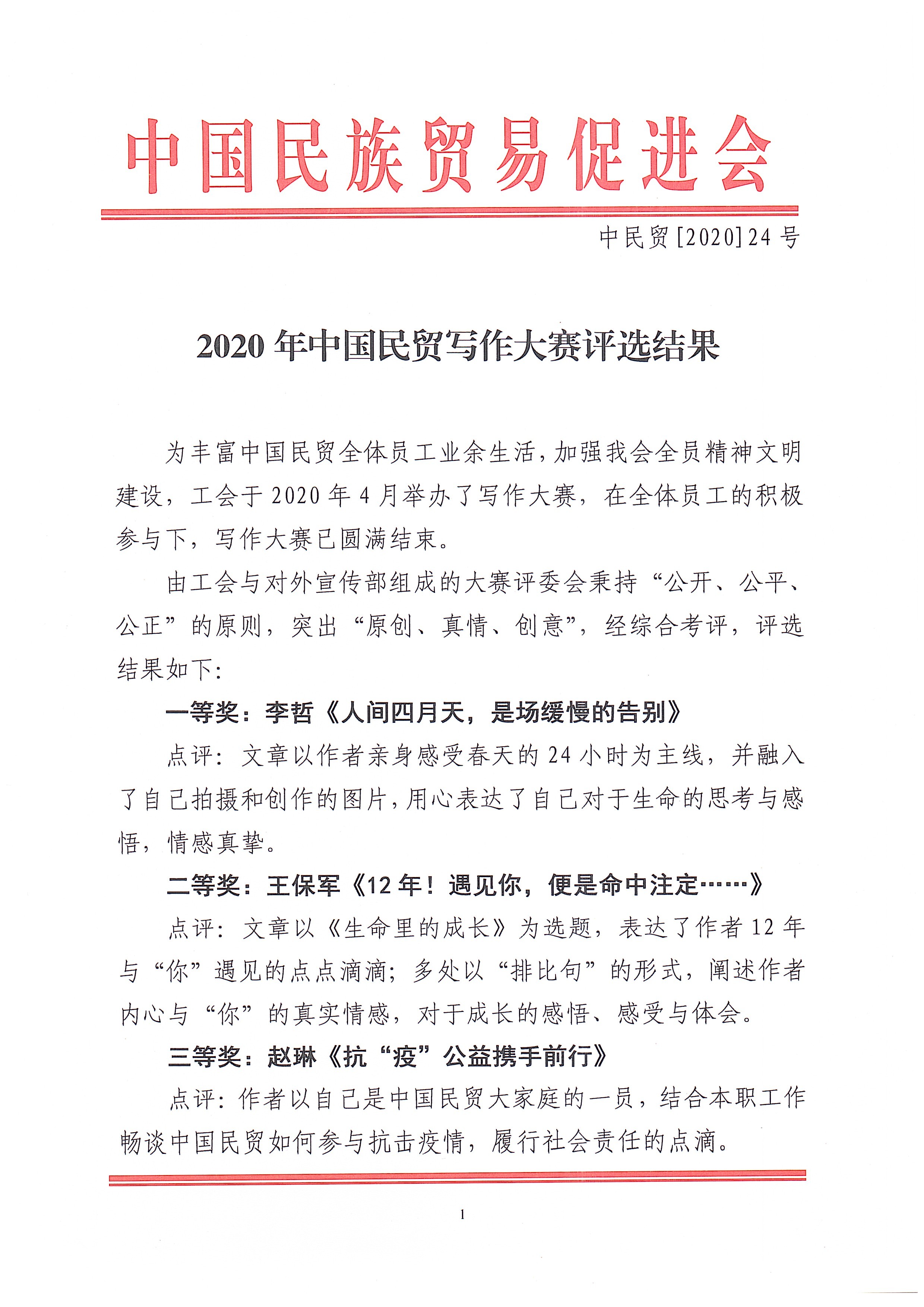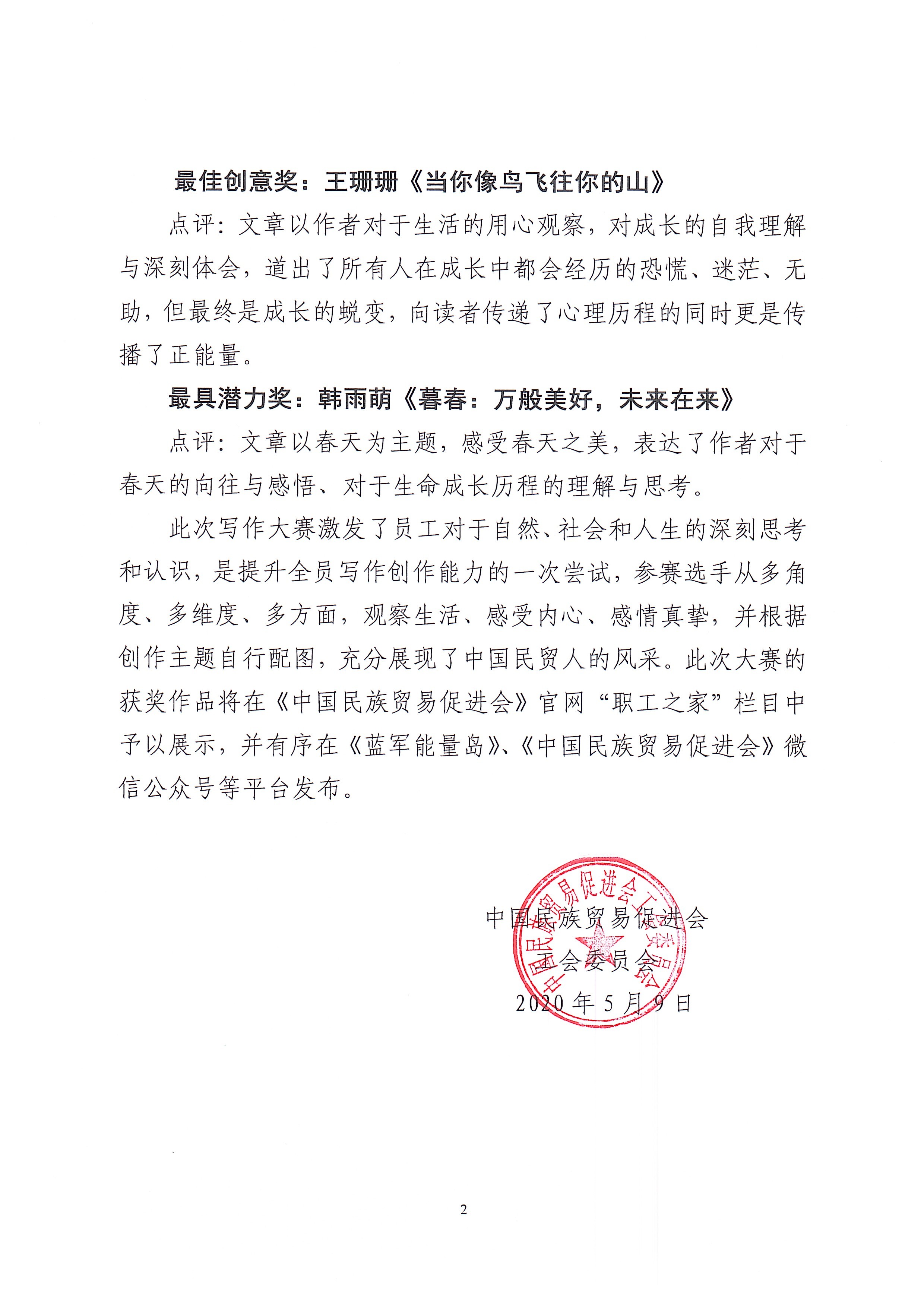 为丰富中国民贸全体员工业余生活,加强我会全员精神文明建设,工会于2020年4月举办了写作大赛,在全体员工的积极参与下,写作大赛已圆满结束。