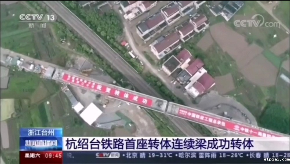 (杭绍台铁路首座转体连续梁成功转体央视新闻报道)