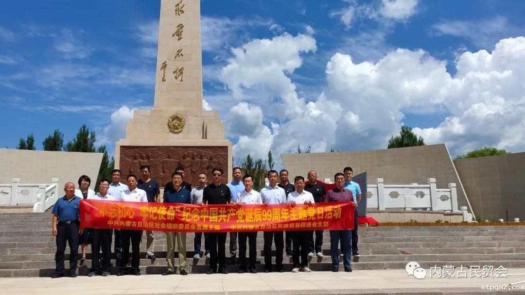 2020年7月1日,中国共产党迎来第99个生日,在这个特别的日子里,中共内蒙古自治区社会组织委员会直属支部、中共内蒙古民族贸易促进会支部组织20多名党员开展“迎七一、庆党生”特色主题党日活动,展现新时代党员的新担当、新作为。在大青山抗日英雄纪念碑前,全体党员面对鲜红党旗,重温入党誓词,接受了一次深刻的革命传统教育,并参观了大青山抗日英雄纪念馆。