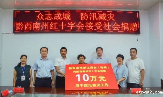 7月15日下午,我会团体会员单位黔西南州浙江商会在黔西南州红十字会举行了捐赠仪式,向黔西南州红十字会捐赠10万元用于防汛减灾工作。
