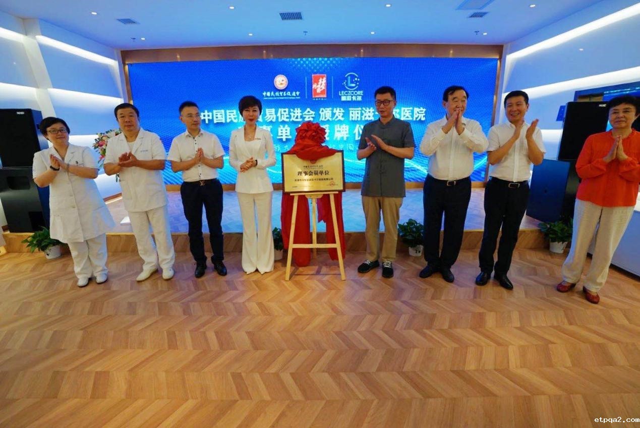 随后,双方举行了隆重的理事单位授牌仪式,在与会领导的共同见证下,蓝军代表我会向天津丽滋卡尔医院授予理事单位铜牌,刘向丽代表院方上台接受。