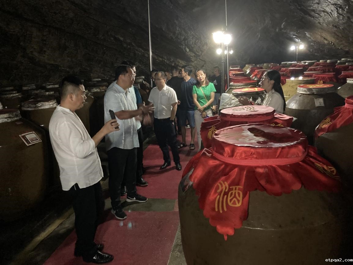 随后,考察团前往国联酒庄观摩调研。贵州国联原荘酒业有限公司总经理温向阳先带领考察团参观了位于酒庄后山山洞的国联酒庄参酒基地。他介绍到,国联酒庄是根据仁怀市委、市政府 “建设特色城市、培植特色产业、发展特色经济”的思路,按照仁怀“生态立市、品牌强市、旅游兴市”的战略实施,以弘扬传承酱香型白酒文化的博览庄园。酒庄依托于茅台镇7.5平方公里全世界唯一的酱酒核心产区。有无可替代的自然环境,以独特的赤水河水源,土壤、空气、气候与酿酒的微生物群生态环境成为酱酒生产和储存不可复制的绝佳环境。
