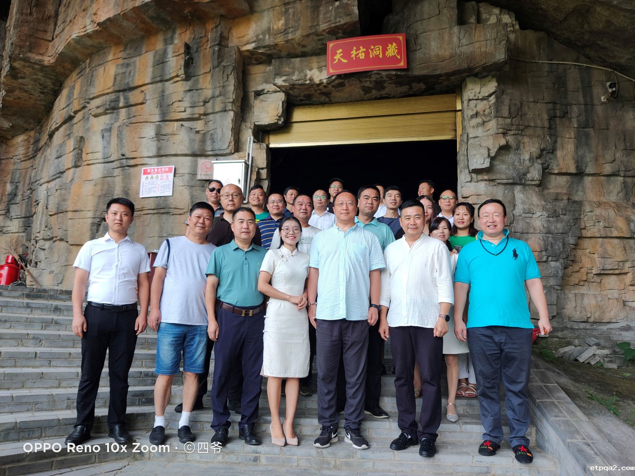 (温向阳向考察团介绍山洞藏酒的优势)