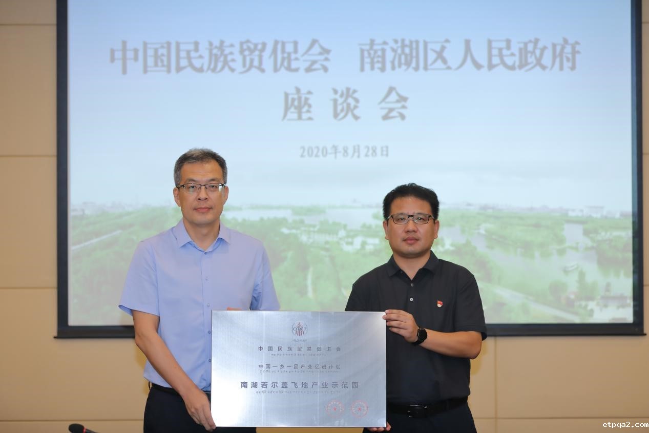 随后,张福阳一行出席嘉兴市南湖区政府组织召开的座谈会,并在会上为“中国betway必威西汉南湖若尔盖飞地产业示范园”授牌。嘉兴市南湖区委常委、副书记、区长邵潘锋在仪式上详细介绍了南湖区的经济社会发展情况,并对中国民贸对南湖与若尔盖工作的关注与支持表示感谢。与会人员就弘扬红船精神、实现产业升级、加强东西协作等议题进行了深入交流。大家纷纷表示,将共同携手,优势互补,深入推动园区企业运营,建立创新东西产业要素交易机制,加速构建资本绿色通道。