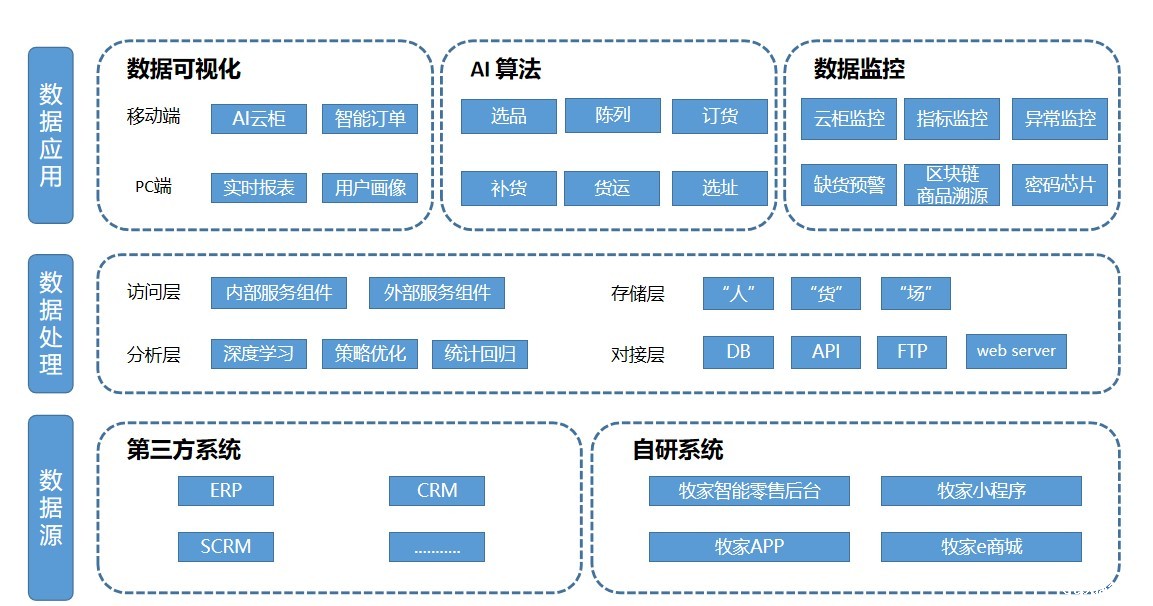 何迎九介绍到,牧家科技自主研发的“牧家云柜及智能零售服务云平台”以“四多”为目标,即多环节数据获取、多层次数据分析、多维度算法模拟、多场景算法应用。提供移动端和PC端数据可视化服务,构建用户、商品、场景多维度数据采集模式,为运营方进行云柜管理、订单管理、商品管理、供应链管理等管理环节提供数据应用赋能。“区块链商品溯源”及“密码芯片”专利技术为云柜商品提供更全面的安全保障。在新零售背景下,牧家云柜助力商品与消费者的对接,为不同场景不同用户进行精细化运营,利用大数据挖掘、深度学习等技术实现“人”、“货”、“场”的消费生态闭环。