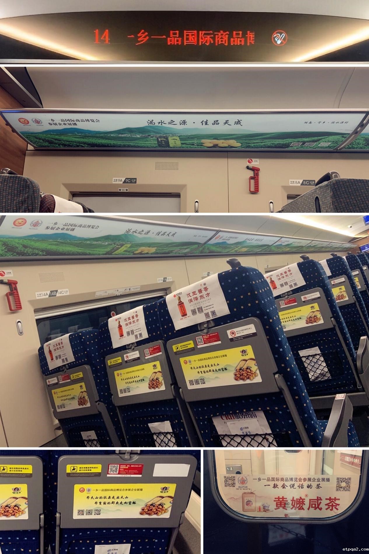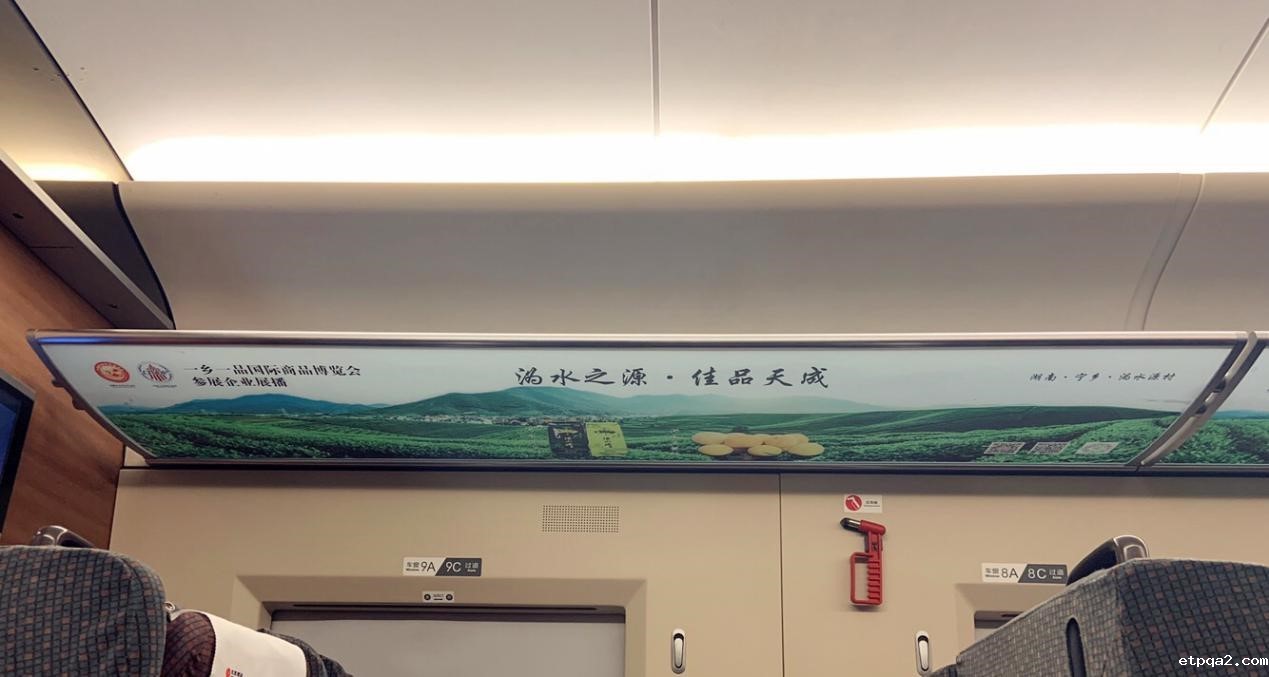 中国betway必威西汉高铁专列上的LED屏、行李架、椅背贴、车门贴等处随处可见的展播资讯