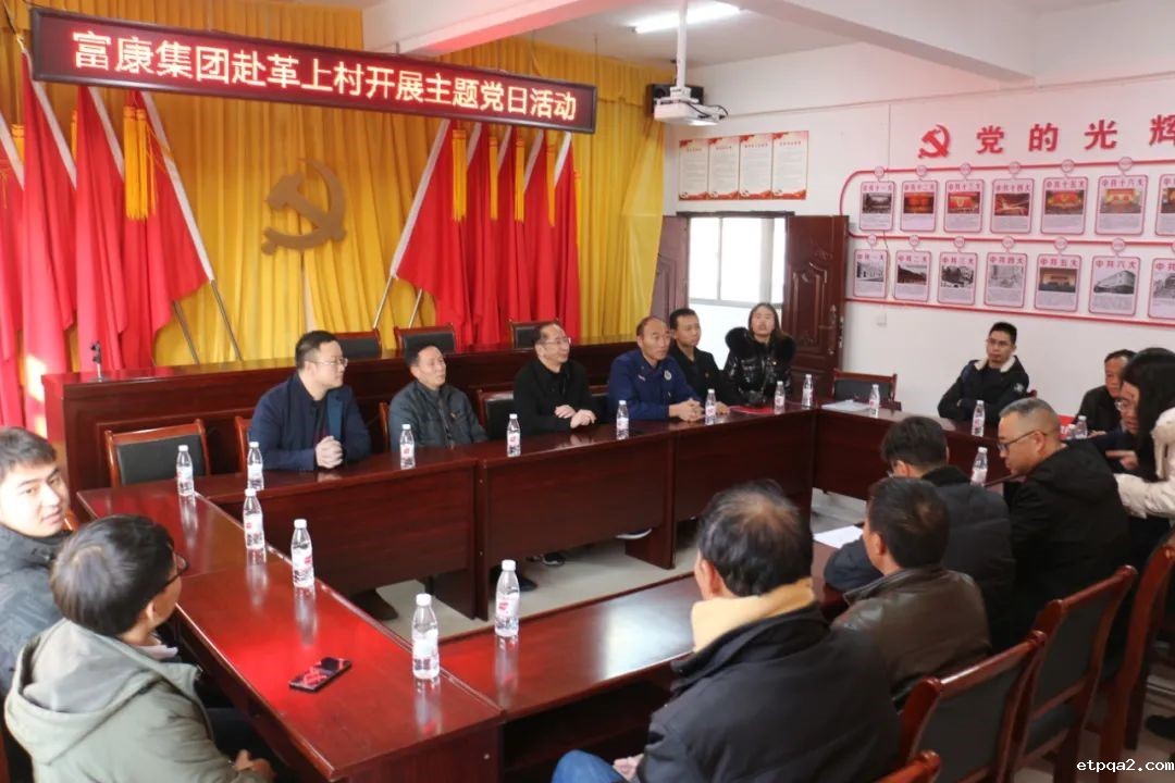 富康集团党委书记杨德兴代表富康集团说到,富康集团从1993年发展至今,有今天的成绩,得益于党和社会的支持,这些年富康集团一直致力于公益事业,自身发展不忘回馈社会。富康集团这些年从教育扶贫、医疗扶贫、精准扶贫、产业扶贫、就业扶贫等方面,投入了近4个亿的扶贫资金,参与美丽乡村建设,助力乡村振兴。希望此次富康集团主题党日活动,能为革上村的乡村振兴助上一臂之力。