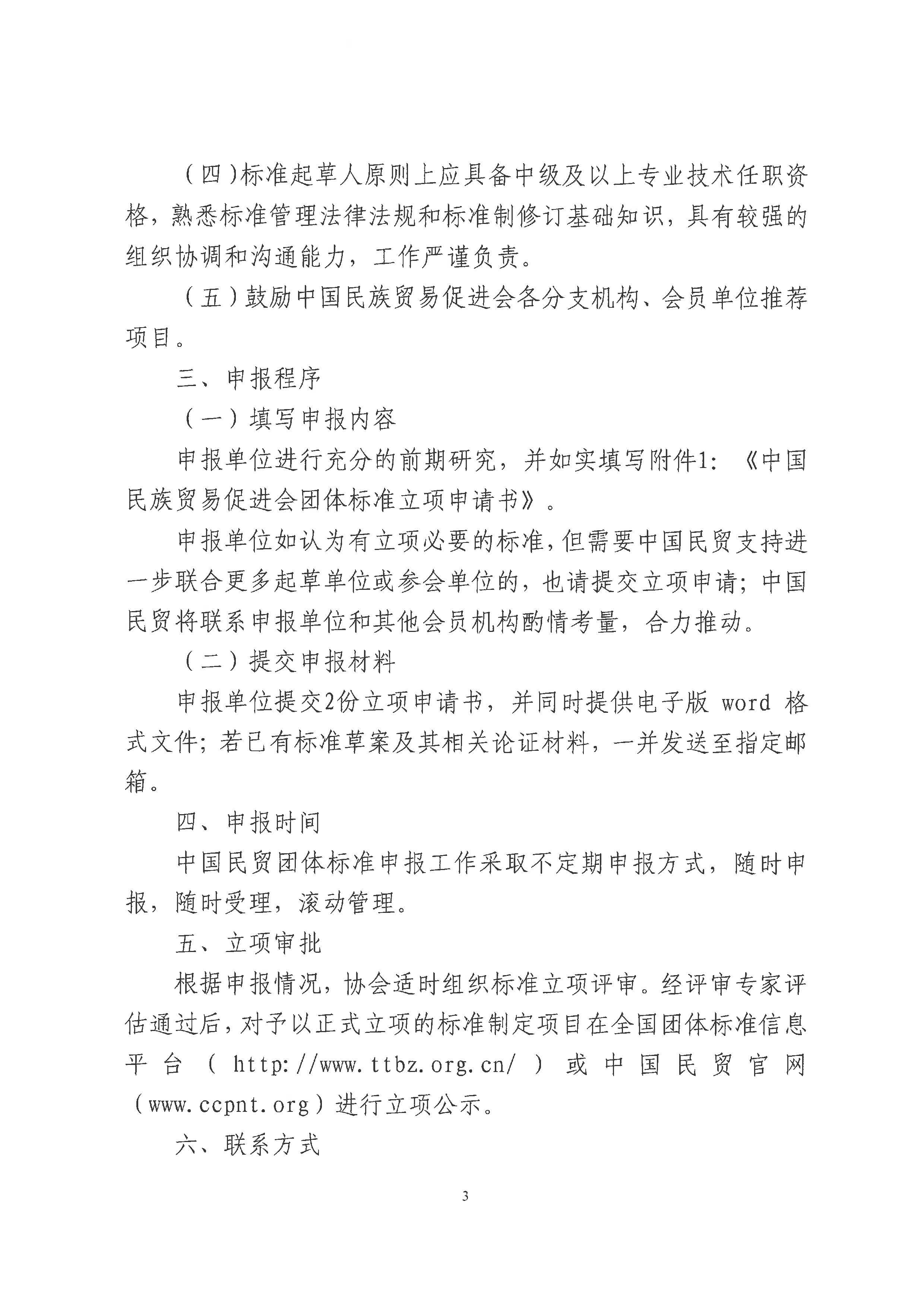 申报单位如认为有立项必要的标准,但需要中国民贸支持进一步联合更多起草单位或参会单位的,也请提交立项申请;中国民贸将联系申报单位和其他会员机构酌情考量,合力推动。
