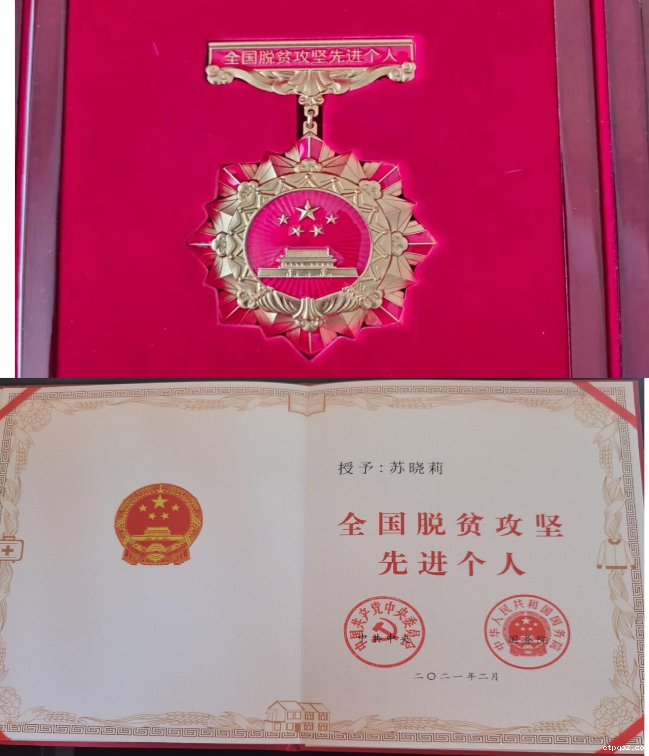 全国脱贫攻坚先进个人奖章与证书