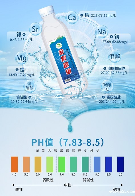 工作人员介绍说,金泉富锶天然矿泉水水源取自236米深的岩石地壳下,该水历经数亿年的净化、溶滤、矿化,水质清澈透明、甘甜柔滑、沁人心脾。具备天然优质、纯净安全、营养健康的品质。经权威鉴定,金泉富锶矿泉水锶含量是国家标准的5-7倍,偏硅酸高于国家标准的15%,是目前锶含量较高的矿泉水。PH值(7.83—8.5)呈天然弱碱性,是人体最佳接受的区间。水源地所在村,全村1037人,80-100岁的长寿老人60位以上,为远近闻名的长寿村。