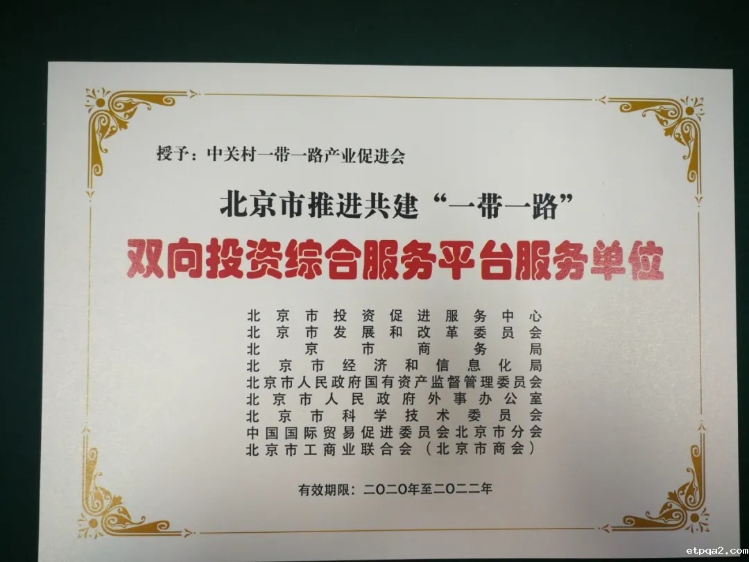 中关村一带一路产业促进会被授予北京市推进共建“一带一路”双向投资综合服务平台服务单位