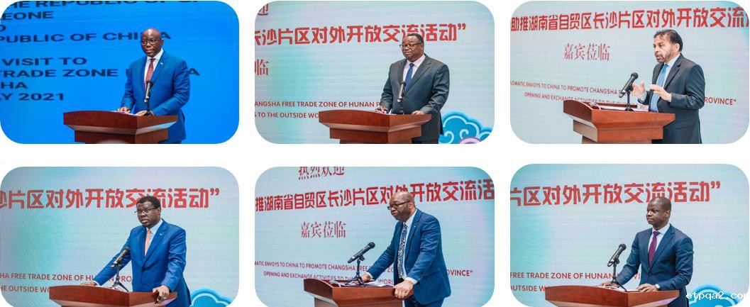 接下来,塞拉利昂共和国驻华大使欧内斯特•恩多马希纳、布基纳法索驻华大使阿达马•孔波雷、斯里兰卡民主社会主义共和国驻华大使帕利塔•科霍纳、南苏丹共和国驻华大使馆临时代办昆巴•蒙代、津巴布韦共和国驻华大使馆副馆长(公使衔参赞)穆嘎布库•杜比、多哥共和国驻华使馆临时代办阿毕纳•耐希当先后进行宣讲。各位大使在讲话中,都高度评价湖南自贸区长沙片区取得的成绩,他们重点了解了湖南自贸区长沙片区营商环境和政策红利,并当场推介了各自国家在基础设施建设、制造业、研发创新、农业、文旅等领域的现状和需求,期待必威betway中文网页及湖南自贸区长沙片区、各与会企业能够继续关注本国经济发展需求,共同探索经贸合作模式、巩固合作关系、深化合作成果。与会大使一致表示,希望充分发挥大使馆的纽带作用,加强各方与本国的沟通和联系,进一步拓宽合作领域、拓展合作平台,并积极引荐本国优质企业到湖南自贸区长沙片区投资兴业,共谋发展,共创双赢局面。