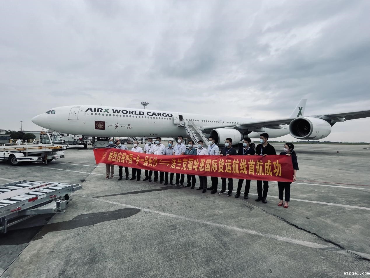 6月30日上午11时30分,一个简短的开航仪式后,随着长沙市副市长刘拥兵宣布正式开航,长沙首条飞往德国的货运航线正式开通。此次航班由中外运跨境电商供应链(湖南)有限公司与中国民贸betway必威西汉产业促进中心联合运营,每周往返三班。