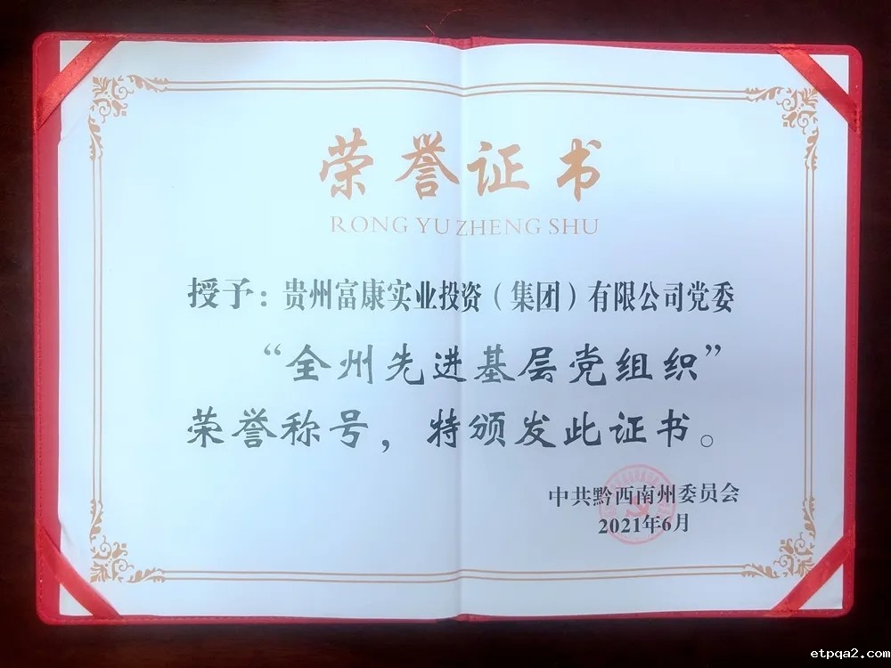 近日,贵州省黔西南州、兴义市优秀共产党员、优秀党务工作者和先进基层党组织表彰大会举行。我会理事会主席团主席会员单位中共贵州富康实业投资(集团)有限公司党委荣获由中共黔西南州委员会颁发的“全州先进基层党组织”称号,中共兴义市委桔山街道工作委员会授予中共贵州富康实业投资(集团)有限公司党委 “先进党组织”荣誉称号。