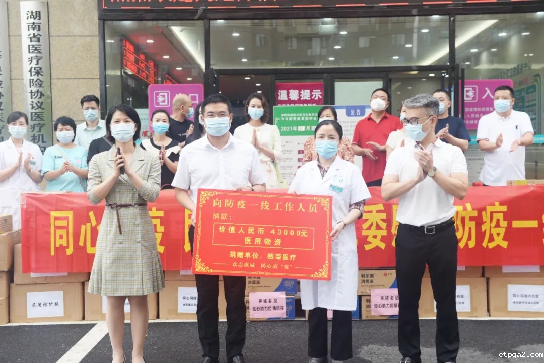 8月13日,我会会员企业德荣医疗董事长郭德斌出席民建长沙市委会开福区工委慰问防疫一线医务人员活动,并向浏阳河街道社区卫生服务中心、望麓园街道社区卫生服务中心捐赠价值43000元的防护服等防疫物资。