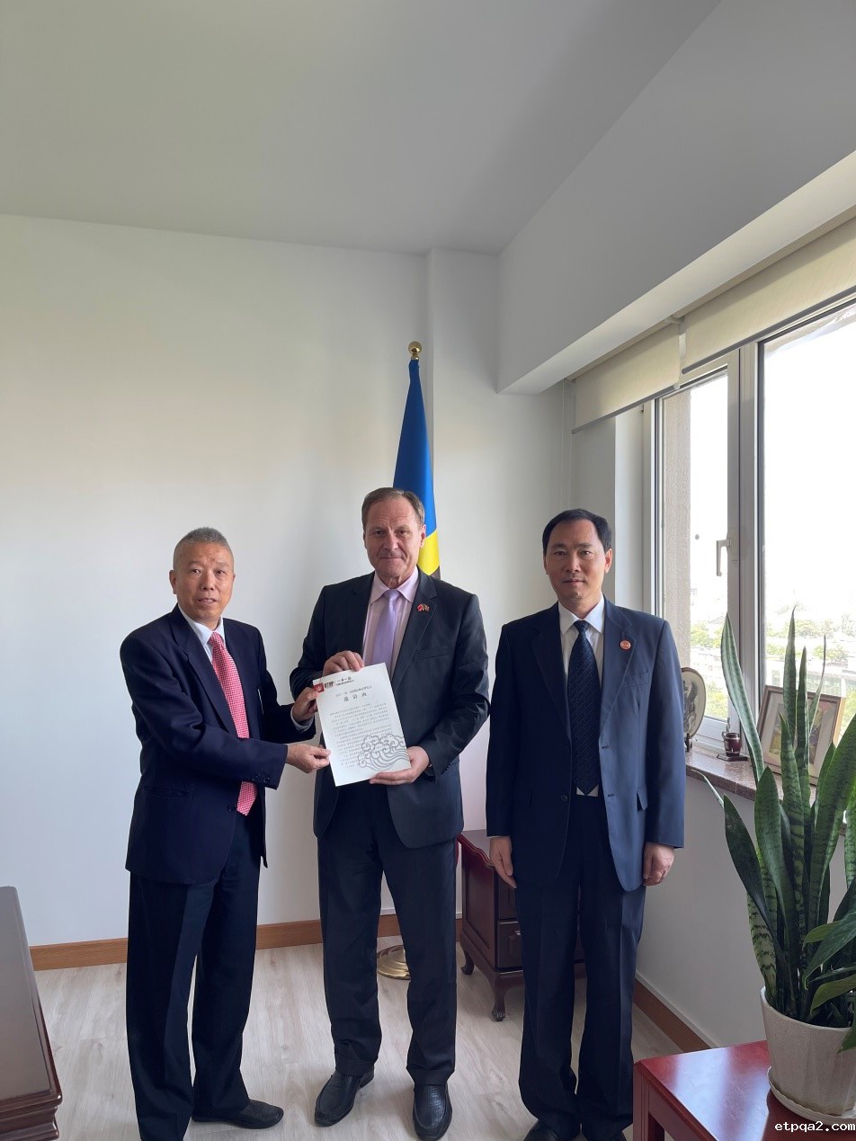 期间,王家军代表我会诚挚邀请摩尔多瓦驻华大使及参赞,出席即将于11月19日在长沙举办的2021betway必威西汉国际商品博览会,并向摩尔多瓦驻华大使Dumitru Braghis、公使衔参赞Cecilia Chirita递交了邀请函。