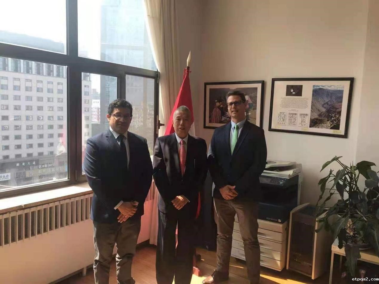 9月14日下午,我会副秘书长兼海外发展合作中心主任吴富贵一行赴秘鲁大使馆拜访秘鲁驻华商务参赞圣地亚哥·托莱多,就推动我会与秘鲁的友好合作进行交流。