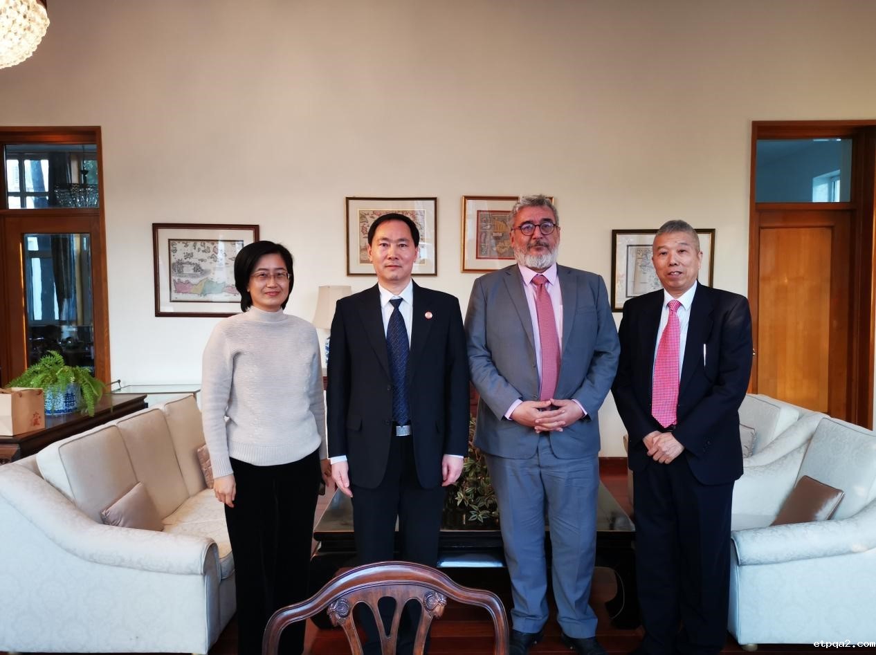 王家军(左二)拜会希腊驻华使馆商务参赞海茨彼得洛斯.乔治阁下(右二)
