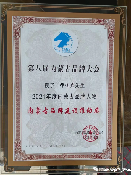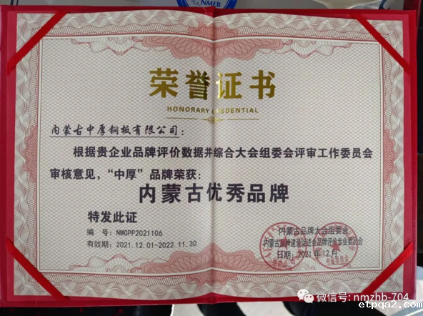 本会理事会员单位内蒙古中厚钢板有限公司荣登2021年度内蒙古优秀品牌磅单,内蒙古中厚钢板有限公司董事长邓宝君荣获2021年度内蒙古品牌人物内蒙古品牌建设推动奖。